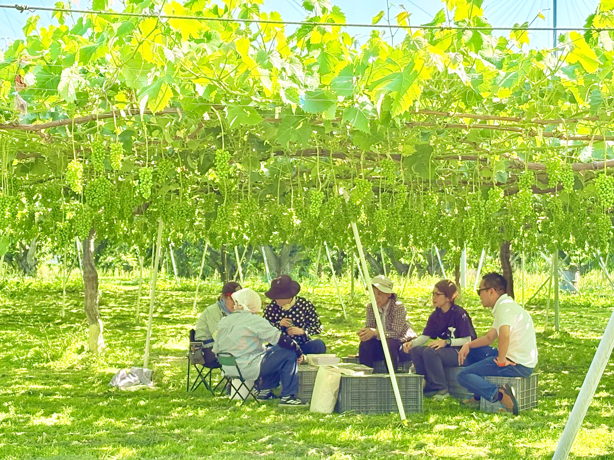 自然の中で没頭できる「房切作業」はまさに快汗です。また、休憩時間のぶどう農家や地域の方たちと交流も都会では味わえません。この非日常の時間をお楽しみください。